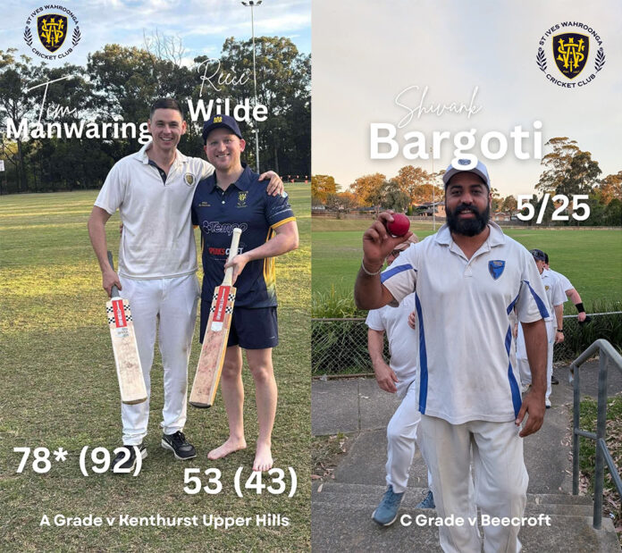 A Grade 6/200 (Tim Manwaring 78*, Reece Wilde 53, Dom Allen 32) defeated Kenthurst Upper Hills 8/168 (Luke Hedley 3/20, Tim Manwaring 2/37)